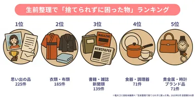 全国500人アンケートで判明! 想い出・実用品・誰にも相談できない“モノ”の正体とは? 生前整理で「捨てられずに困った物」ランキングTOP5 結果発表