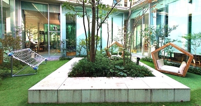 中之島図書館に新たに生まれた「中庭」にて近畿大学 村松ゼミが「エコー遺産アカペラライブ!」を実施