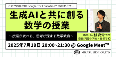 ミカサ商事、教職員向けセミナー「生成AIと共に創る数学の授業 ~授業が変わる、思考が深まる数学教育~」7月19日(土)開催