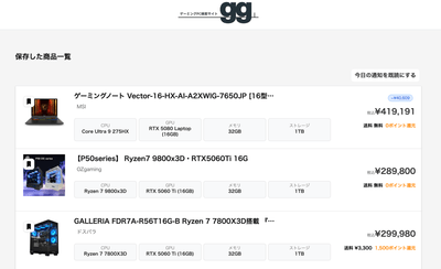 【セール・買い時を逃さない】欲しいゲーミングPCが「安くなったタイミング」を通知──国内最大級のゲーミングPC検索サイト gg