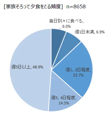 既婚女性8,658人に聞いた “家族が別々に食べるごはん作り”調査結果を発表! 夕食に家族がそろうのは週2日以下という回答が3人に1人以上