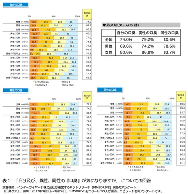 <口臭ケアに関する意識調査> 自分より「他人の口臭」、 女性より「男性の口臭」が気になる人が多い
