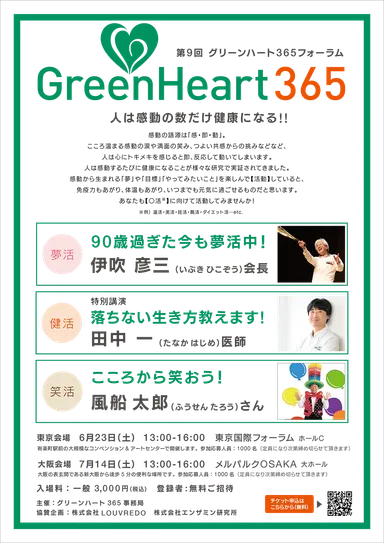 人は感動の数だけ健康になる!! 「第9回グリーンハート365フォーラム」 6月23日東京国際フォーラム、7月14日メルパルクOSAKAにて開催