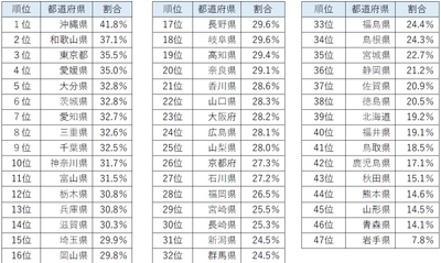 【都道府県ランキング】株式投資をやっている⼈、 意外なトップは沖縄、2位は和歌⼭