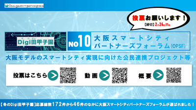 大阪スマートシティパートナーズフォーラムが「冬のDigi田甲子園」にてインターネット投票候補に選出されました!