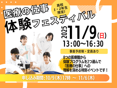 高校1・2年生が医療職をリアル体験!進路を広げる実践型イベントを11月9日に開催(森ノ宮医療大学)