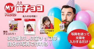 スマホから簡単注文!懐かしの駄菓子「笛チョコ」をオリジナルラベルで作れます。ユニークなお菓子ノベルティ