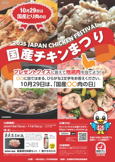 「国産チキンまつり・2025地鶏肉セットプレゼントキャンペーン」 10月15日(水)~11月15日(土)に開催! ~あんしんも、おいしさも。~