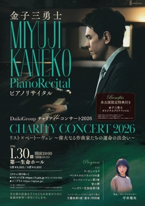ピアニスト金子三勇士出演 『すべての子どもたちに明るい未来を』がテーマのDaikiGroupチャリティーコンサート2026『リスト×ベートーヴェン~偉大なる作曲家たちの運命の出会い~』開催決定