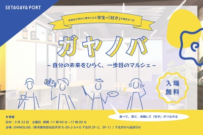 世田谷で何かに夢中になる学生の「好き」が集う!「ガヤノバ ~ 自分の未来をひらく、一歩目のマルシェ ~」3/22(土)開催!