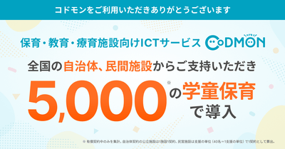 保育・教育・療育施設向けICTサービス「CoDMON(コドモン)」 全国5,000の学童保育・放課後児童クラブに導入 ~官民の学童現場での「安全管理」と「働きやすさ」の課題をICTで支援~