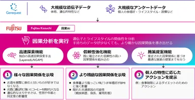 ジーンクエストと富士通、「Fujitsu Kozuchi」の 高速・高信頼な因果AI活用により遺伝子と ライフスタイルの関係性に新たな知見を導出
