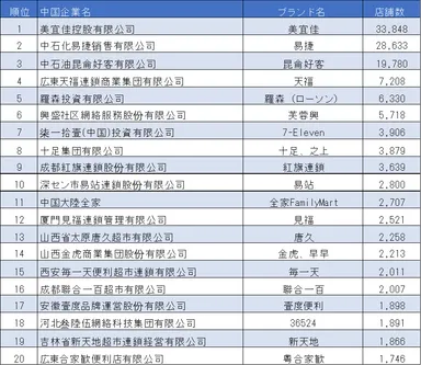 「中国における日系コンビニエンスストアの市場動向」 調査結果を発表 ~日系大手3社は中国市場店舗数トップ20位にランクイン!~