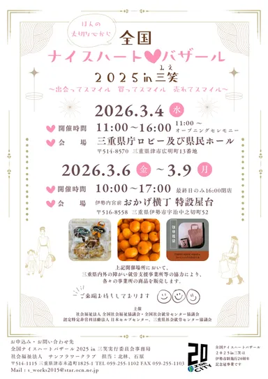 「全国ナイスハートバザール2025 in 三笑」 3月4日、6日~9日に開催! ―全国の障がい者就労支援事業所で作られた商品を展示・販売― ※厚生労働省令和7年度民間社会福祉事業助成費補助金