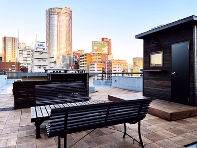 屋上でリフレッシュできる共用ラウンジ付きオフィス、募集中です。