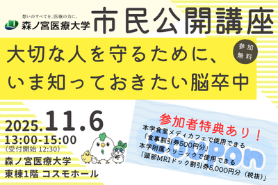 【11/6】脳卒中から大切な人を守るために…医療系総合大学が市民公開講座を開催(森ノ宮医療大学)
