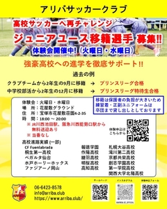 アリバサッカークラブ、ジュニアユース移籍選手の募集を開始