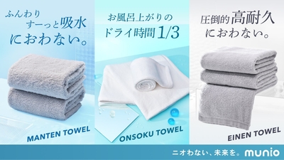 【MUNIO】「匂わない」を徹底追求したタオルブランドが新たに誕生。第一弾の商品として薬剤不使用の抗菌技術を採用した次世代タオル3種類が登場