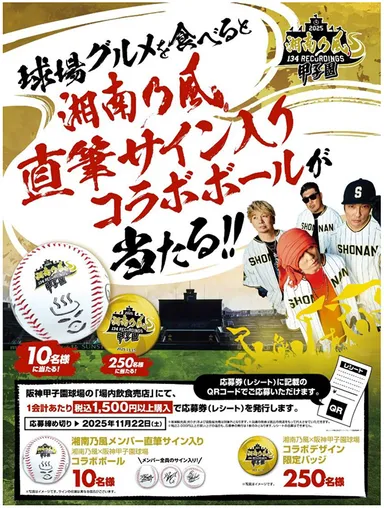 「湘南乃風 熱唱甲子園」グルメキャンペーン 11月15日(土)開催! ~抽選で湘南乃風のメンバー直筆サイン入り ボールなどが当たる!~