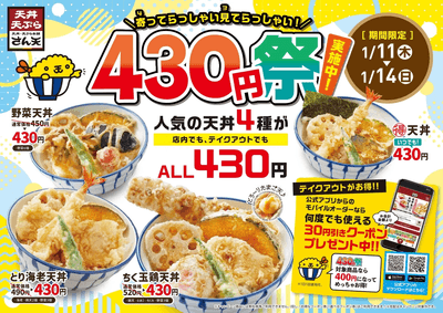 【天丼・天ぷら本舗 さん天】天丼430円祭りを開催