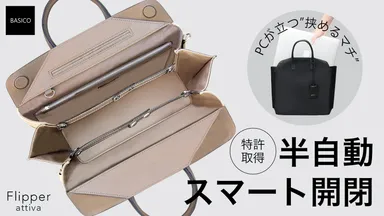 半自動的スマート開閉!PCが立つ《挟めるマチ》の新感覚バッグ 特許取得技術を使用したFlipper attivaを3月27日から先行販売