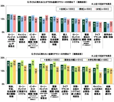 SMBCコンシューマーファイナンス調べ 子どもに教えたい金融リテラシー 高校生の親では「インターネット詐欺の種類・特徴」、 大学生等の親では 「税金、年金、社会保障等の種類・特徴」が1位