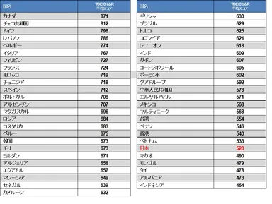 2018年TOEIC(R) Listening & Reading Test 世界の受験者スコアとアンケート結果を発表いたします。 日本の平均スコアは、520点
