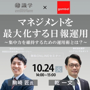 【参加費無料】識学×gamba!オンラインセミナー第二弾「マネジメントを最大化する日報運用法」10/24に開催します
