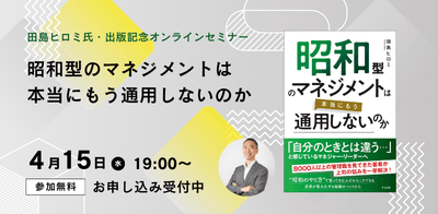 人財育成コンサルタントとして8000人以上の管理職を見てきた田島ヒロミ氏新刊『昭和型のマネジメントは本当にもう通用しないのか』発売記念【無料オンラインセミナー】4月15日(水)19時開催!
