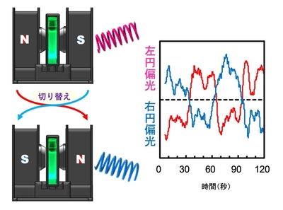 電磁石を用いた簡易的な方法で円偏光の回転方向の高速切替に成功 円偏光発光の高性能化の新たな道筋を開拓