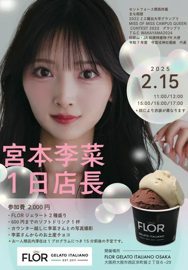 [大阪] ハンドメイドジェラートブランド「FLOR」で タレント・宮本李菜さんの1日店長イベントを2/15(土)開催!