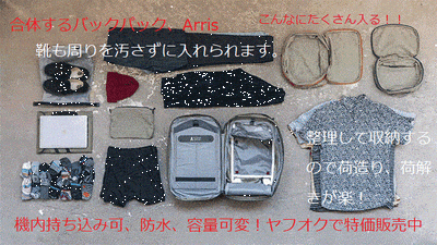 残り3日間!!出張にも最適化!Arrisのバックパックは容量可変、出し入れに工夫満載!!machi-yaでお得に購入できます!!