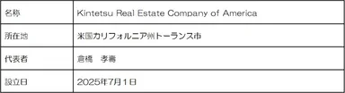 米国現地法人 「Kintetsu Real Estate Company of America」 の設立について