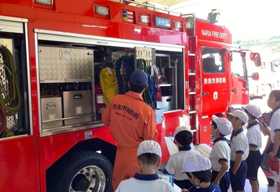 近畿大学附属小学校3年生が社会見学で消防署を訪問 年中無休で地域の安全を守る仕事について学び、防災意識を高める