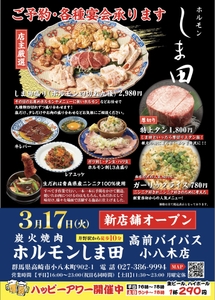 群馬・高崎に「炭火焼肉ホルモンしま田 高前バイパス 小八木店」 3月17日オープン