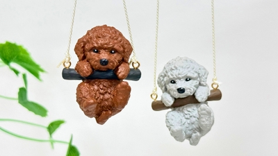 ブランコにつかまる犬にシルバー色、チョコ色が新たに登場。 カプセルトイ「ぶらぶらりーず ゆれるトイプーたち」新発売