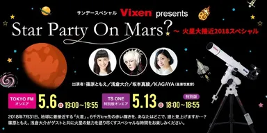 5月6日(日)TOKYO FM、5月13日(日)TS-ONEで アツいぜ!火星。『Vixen Presents “Star Party On Mars?~火星大接近2018スペシャル~”』を放送