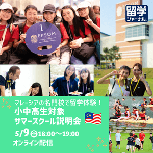 留学ジャーナル主催「マレーシアの名門校で留学体験!小中高生対象サマースクール説明会」のお知らせ