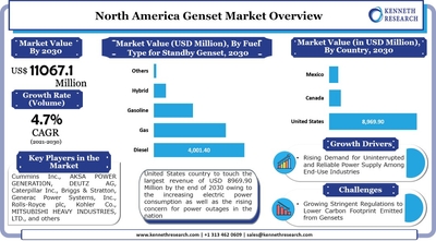 北米のGenset市場は、この地域の建設産業の成長により成長します。市場は2030年までに1,10億6,710万米ドルの収益を獲得