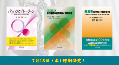「パワハラのグレーゾーン-裁判例・指針にみる境界事例-」「ケースでみる 境界確認の困難要因と実務対応」「非典型財産の相続実務-金融商品、デジタル財産、知的財産、地位・権利、特殊な不動産・動産等-」好評につき再入荷致しました!