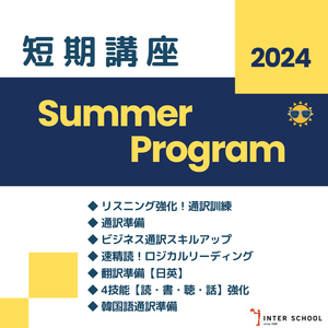 プロ通訳者・翻訳者からの実践的な指導で、スキルを磨く! 【7.8.9月開講】インタースクール_短期講座 Summer Program2024受付開始