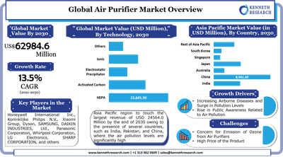 世界の空気清浄機市場は、大気汚染による死亡者数の増加を背景に成長する。市場は2021年から2030年の間に13.5%のCAGRで成長する