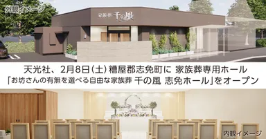 家族葬専用ホール「千の風」が糟屋郡志免町に初出店 「お坊さんの有無を選べる自由な家族葬 千の風 志免ホール」 2月8日(土)にオープン!