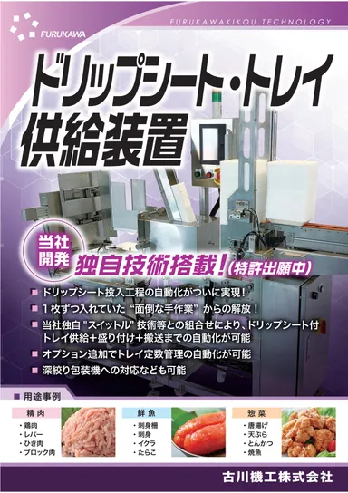 スーパーやコンビニ等の生鮮食品の盛り付けシーンで活用する ドリップシート自動投入機能付トレイ供給装置を初展示!