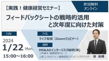 健康経営優良法人認定制度におけるフィードバックシートの 活用方法を解説するオンラインセミナーを1月22日に開催