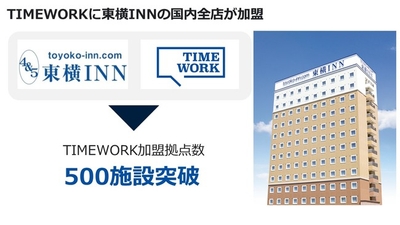 スペースシェアリングサービス「TIMEWORK」に国内の東横INN全店が加盟し、加盟店舗数500店を突破