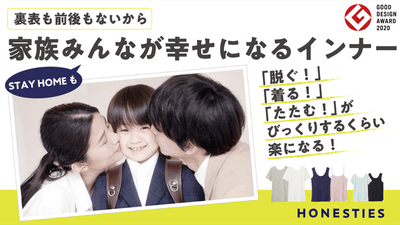 裏表前後のない肌着を製造販売する「HONESTIES(オネスティーズ)」が、2020年度のグッドデザイン賞受賞を記念し、12月1日~1月5日まで商品購入1点から送料無料キャンペーンを実施!