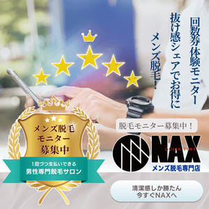 【最大半額】メンズNAXで脱毛モニター募集中!4回分回数券でお得に脱毛体験!
