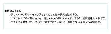 適切なサイズ選びと正しいマスクの装着で 花粉・微小粒子の遮断効果を検証
