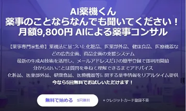 低価格で薬事のお悩みを解決する2つのサービス提供開始! (1)チラシ1枚1万円の薬事添削サービス (2)初月980円~チャットで薬事相談「AI薬機くん」 化粧品、医薬部外品、健康食品、医療機器の薬事アドバイス